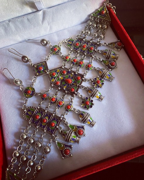 Tous nos bijoux sont fabriqués avec soin en argent 925, souvent sertis de pierres traditionnelles comme le corail rouge, la turquoise ou l'ambre. Nous collaborons avec des artisans passionnés qui perpétuent les techniques traditionnelles transmises de génération en génération.